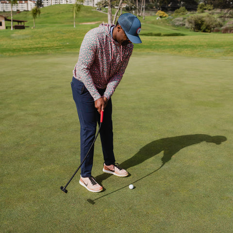 4. Go back to your normal putter and normal setup (now slightly further away from the ball than with the String Theory), and repeat the process.
